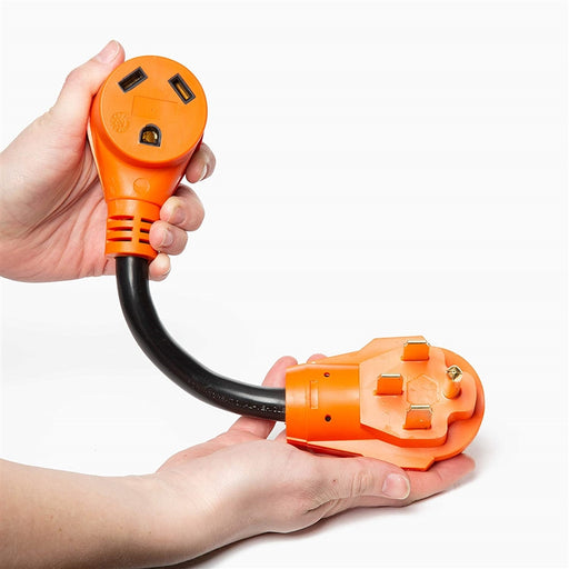 Hebron RV Power Converter - 30 Amp Male to 50 Amp Female Dogbone Adapter The Hebron dogbone adapter has a clean and sleek design, which makes it ea...