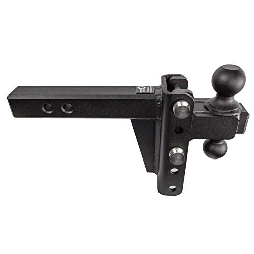 BulletProof Hitches 2.0" Adjustable Heavy Duty (22,000lb Rating) 4" Drop/Rise Trailer Hitch with 2" and 2 5/16" Dual Ball (Black Textured Powder Coat, Solid Steel)
