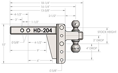 - 2.0" Shank (Class 4) Fits Any 2.0" Receiver, 3 Different Height Adjustments.
