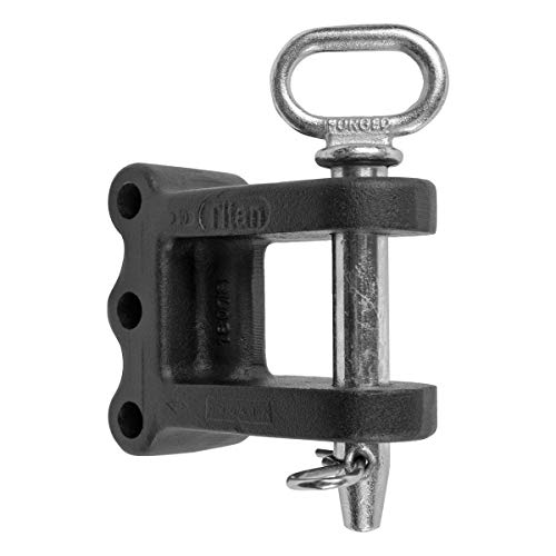 Details: The clevis attachment features a 1" pin and a 2-1/2" opening which allows connection to a lunette ring or a farm-style draw bar. This will allow you to tow farming equipment, pintle trailers, even chains and straps! The 2-tang clevis is compatible with all BulletProof Hitches. This attachment is built with solid steel and is coated with our signature black textured powder coat, just like the rest of our hitches and accessories. This product includes a 1" zinc plated pin with a large handle and three of our standard 5/8" hardened pins. Rated to 20,000lbs.