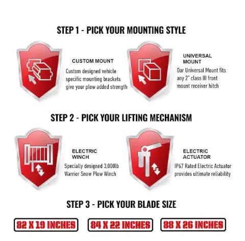 - An electric actuator lifts the blade, controlled from inside your warm vehicle for easy up and down snow control