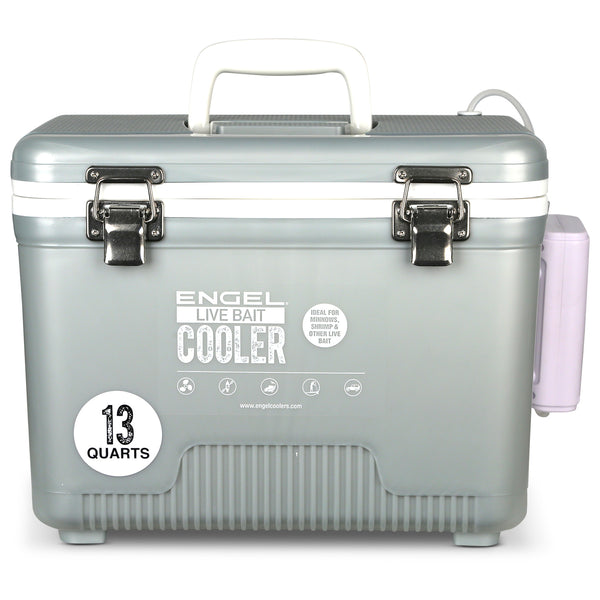 Engel Silver Live bait Pro Cooler with Rechargeable Aerator & Stainless Hardware