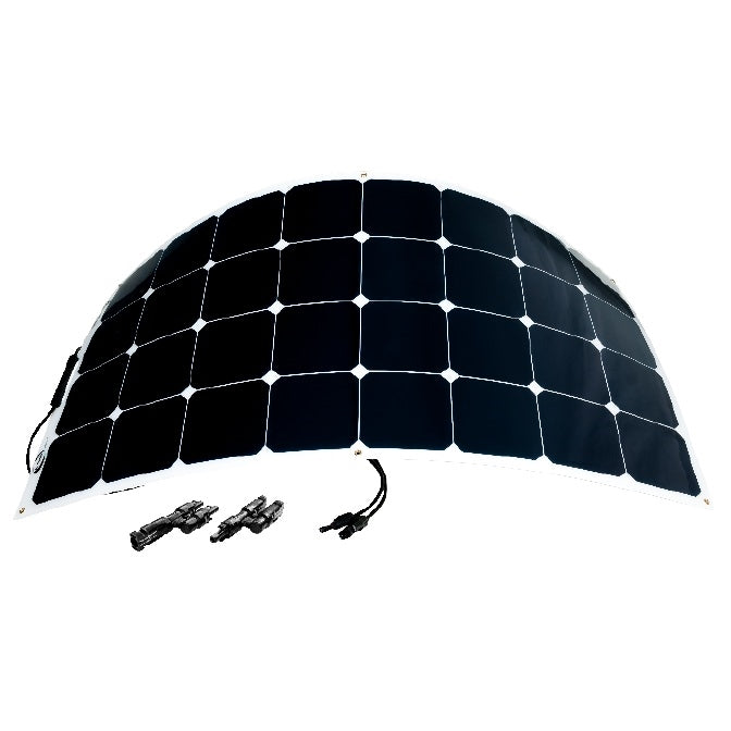 The Go Power! Solar Flex panels are aerodynamic and DURABLE - a virtually unbreakable solar battery charger for RVs, boats, work trucks and long-haul trailers and sleeper cabs. These solar panels are designed to provide a powerful charging solution for batteries and conform to almost any surface. Unlike other flexible products, Solar Flex uses high-efficiency monocrystalline cells that produce more power per square foot than any other flexible panel on the market.